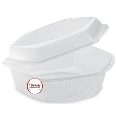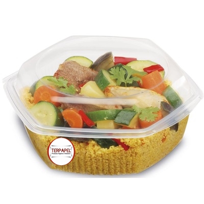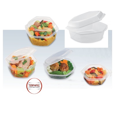 Caixa selada com tampa de dobradiça hexagonal translúcida micro-ondulada, ideal para take away vendas
