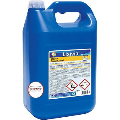 Lixívia com 4-5% de cloro ativo para branquear e desinfetar.